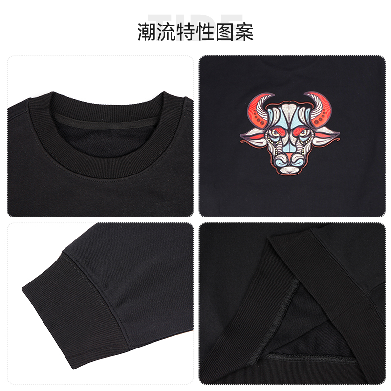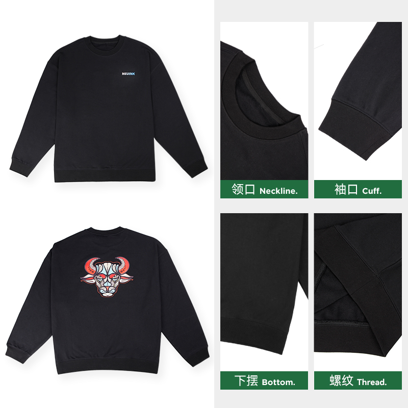 NEUINK十二生肖系列复古美式 情侣上衣丑牛 潮牌卫衣圆领秋冬男女款