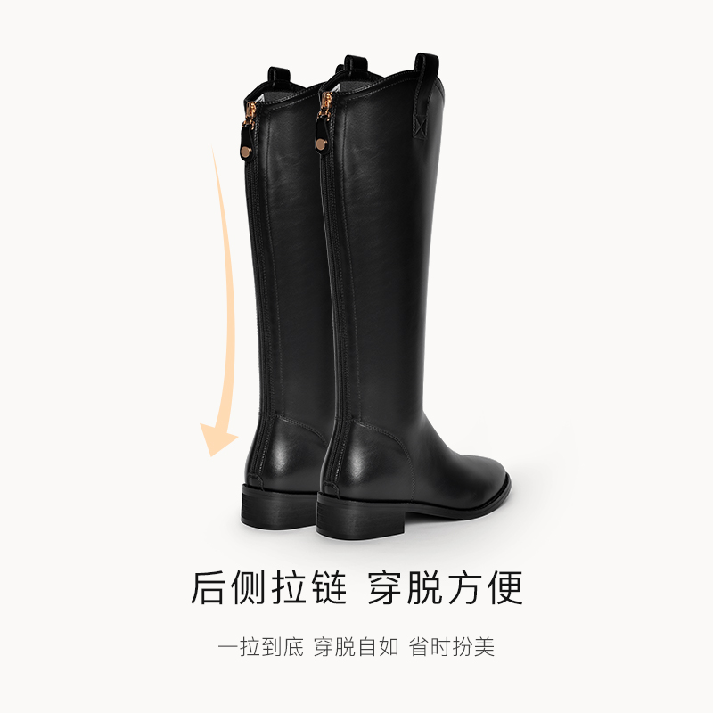 REEMOOR睿慕秋冬新款 V口提耳尖头气质复古长筒骑士靴显瘦靴子