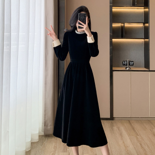 显瘦欧货气质长袖 大码 打底裙子 高级感黑色丝绒连衣裙女秋冬季 法式