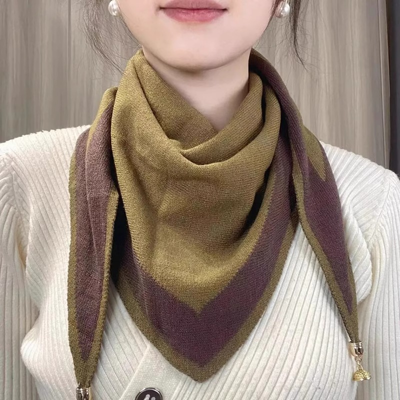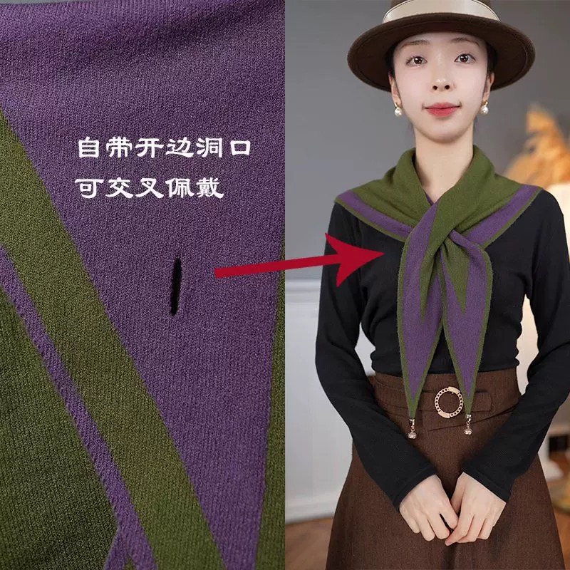 百搭山茶花拼色三角巾围脖 时尚 2025秋冬护颈围巾新款 磁扣针织韩版