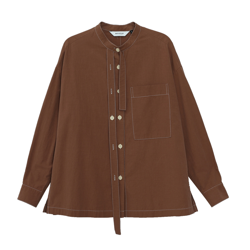 上衣2025秋季 女棉质撞色翻领单排扣长袖 Eland衣恋衬衫 新 预售
