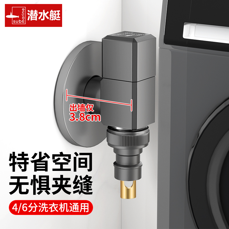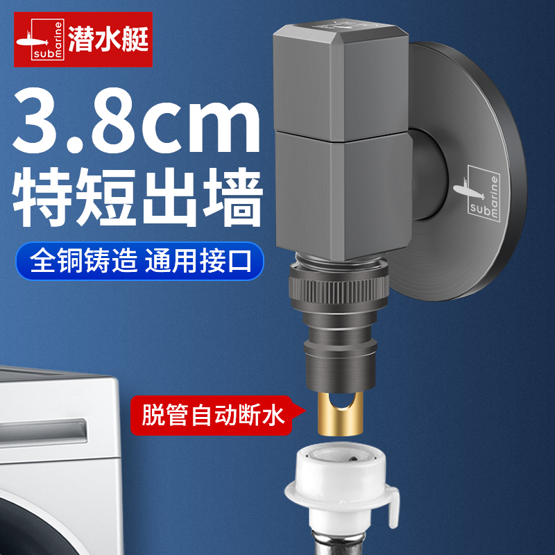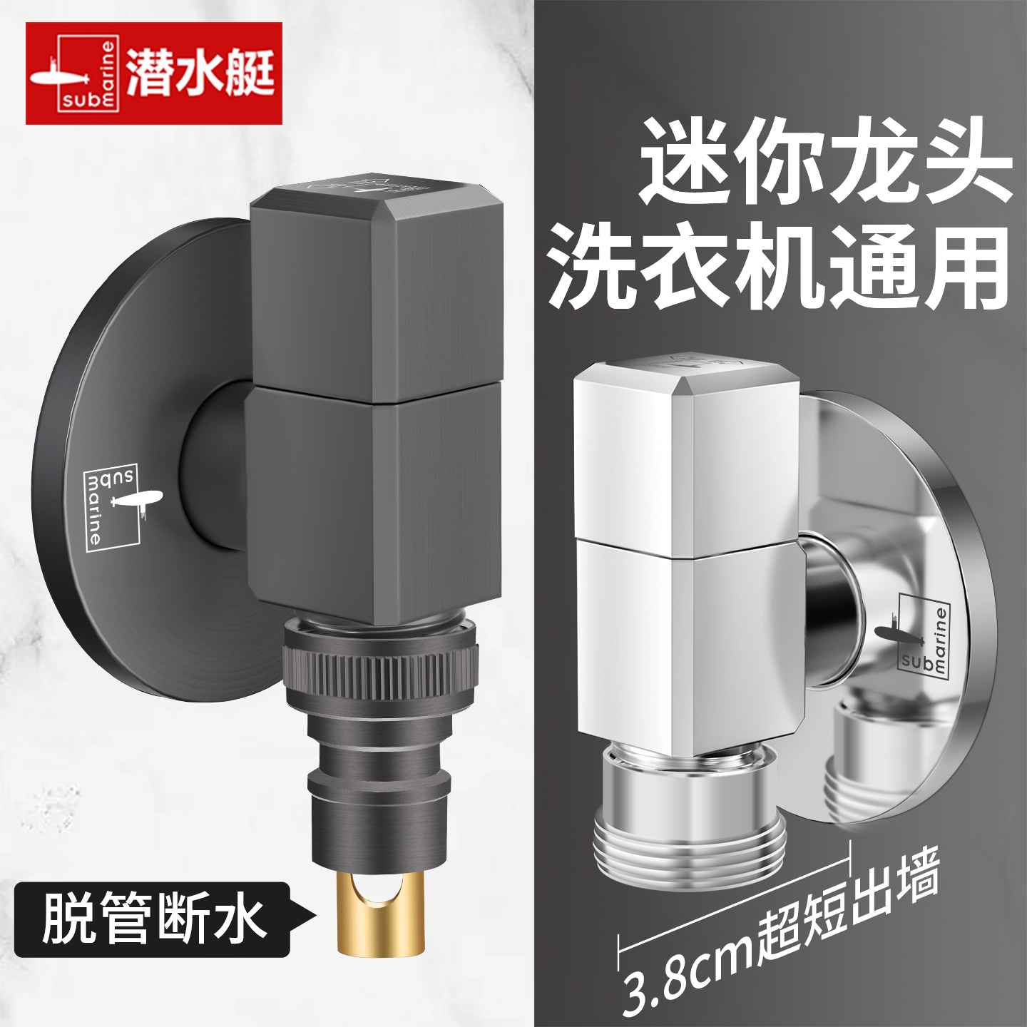 潜水艇洗衣机水龙头家用自动止水阀专用水嘴接头46分全铜超薄角阀