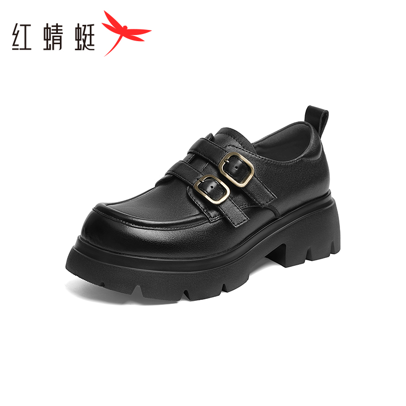真皮通勤单鞋 女秋季 红蜻蜓厚底乐福鞋 复古增高小皮鞋 双11预售