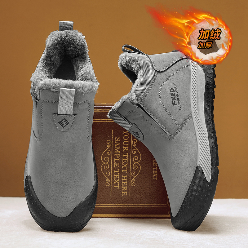 中年老人加厚加绒高帮短靴子保暖防水雪地靴男款 男士 爸爸 棉鞋 冬季