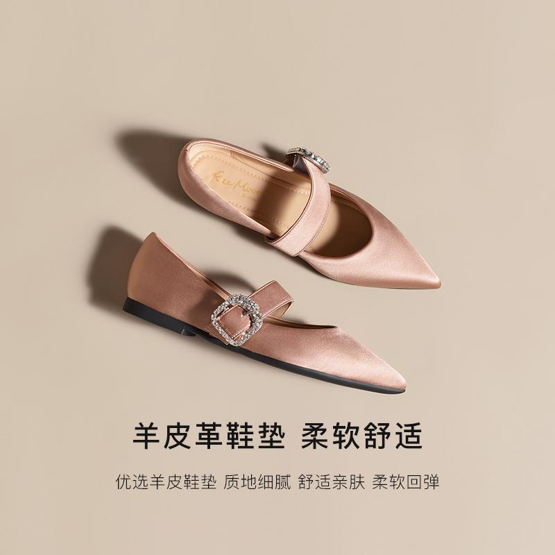 一字带尖头玛丽珍女款 气质水钻浅口单鞋 新款 REEMOOR睿慕2025秋季