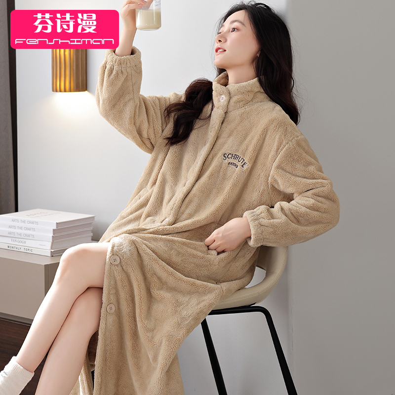 秋冬款 浴袍睡衣2025新款 法兰绒浴衣 珊瑚绒加厚加绒长款 睡袍女冬季
