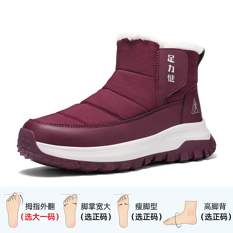 软底休闲中老年人加绒高帮皮面妈妈鞋 足力健旗舰店2024年冬季 新款