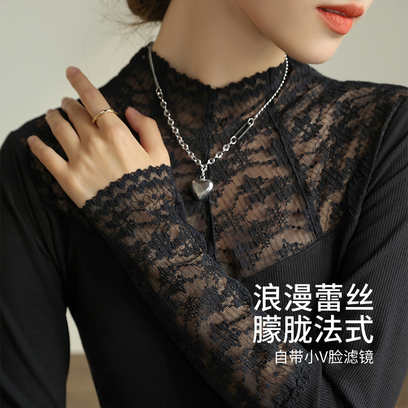 雅黛丽半高领镂空蕾丝打底衫 秋冬高级感简约可外穿内搭 女2025新款