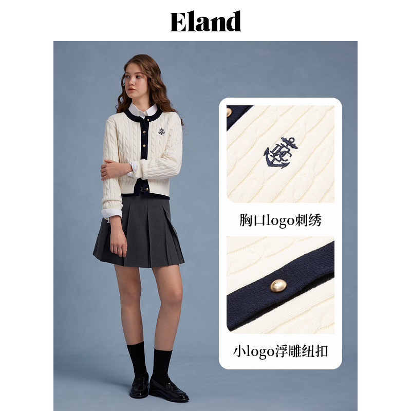2025春季 女小香风门襟撞色衫 Eland衣恋毛针织衫 新款 含山羊绒