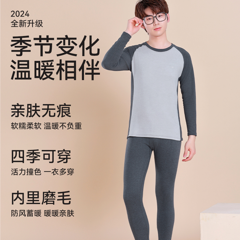 男大童初中高中学生内穿上衣 保暖内衣男款 猫人青少年秋衣秋裤 套装