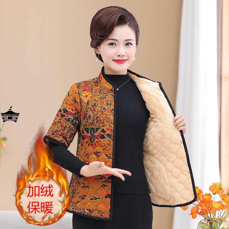 妈妈秋冬款 加绒加厚棉袄中老年女士马甲保暖加棉护肩外套背心 中袖