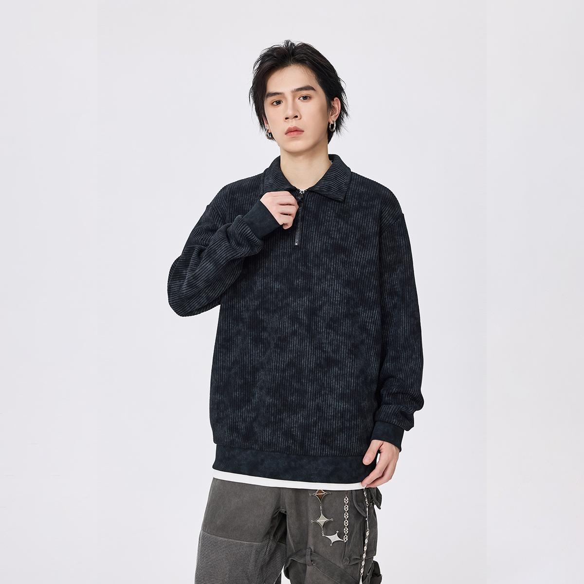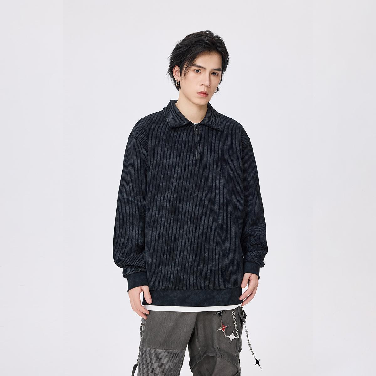 春潮牌半拉链上衣 卫衣男生2024新款 JFU秋季 重磅扎染polo领长袖