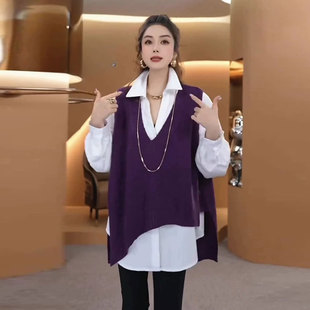 胖mm上衣 打底衫 大码 慵懒风软糯毛衣女秋冬内搭外穿套头宽松针织衫