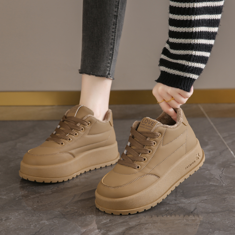 革面保暖厚底时尚 运动鞋 平底鞋 板鞋 子 女款 秋季 女鞋 特步男鞋 休闲鞋