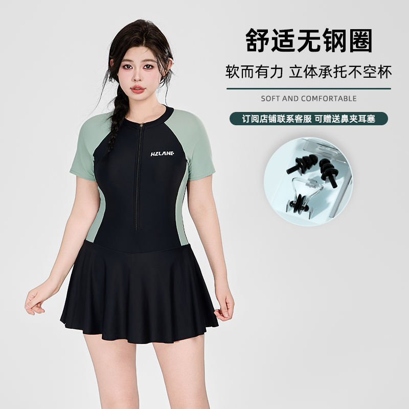 温泉泳装 游泳馆专用女士微胖遮肉大码 爆款 回力泳衣女连体2025新款