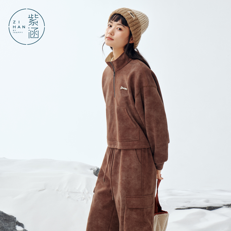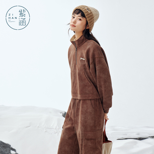 新款 紫涵运动休闲风立领拉链卫衣外套工装 女冬季 子两件套装 休闲裤