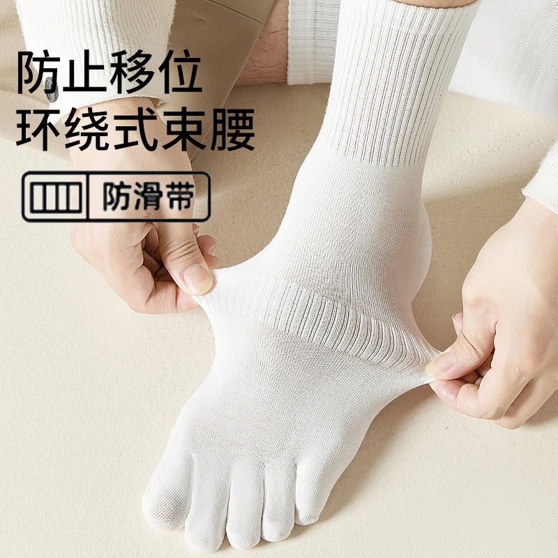 男生长袜分趾袜 纯棉吸汗防臭长筒秋冬季 五指袜子男士 中筒袜春秋款
