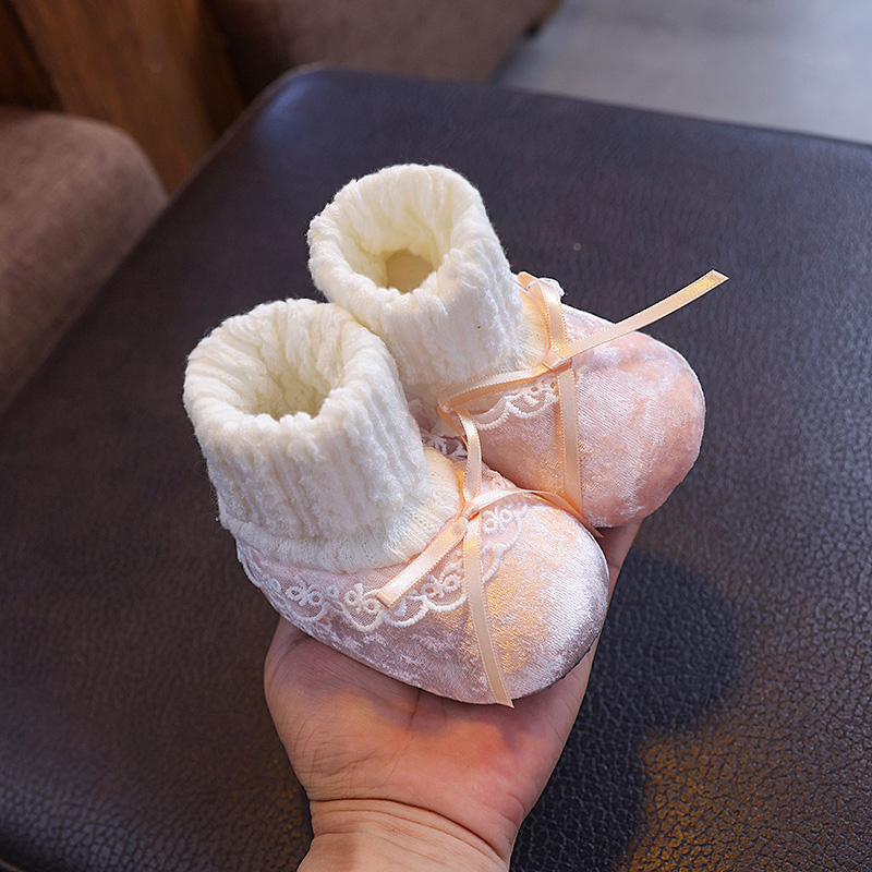 袜不掉外出防滑地板步前鞋 秋冬新生婴儿0 1岁宝宝公主保暖加厚鞋