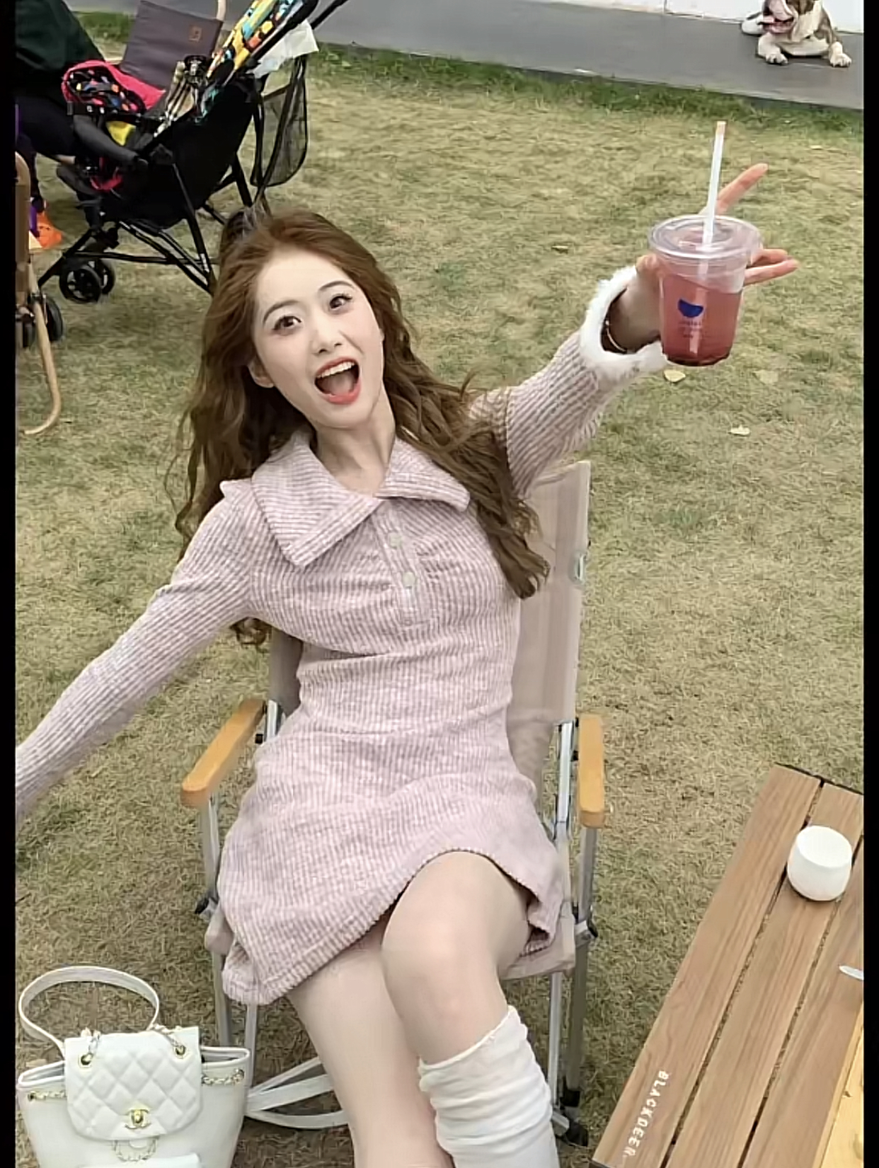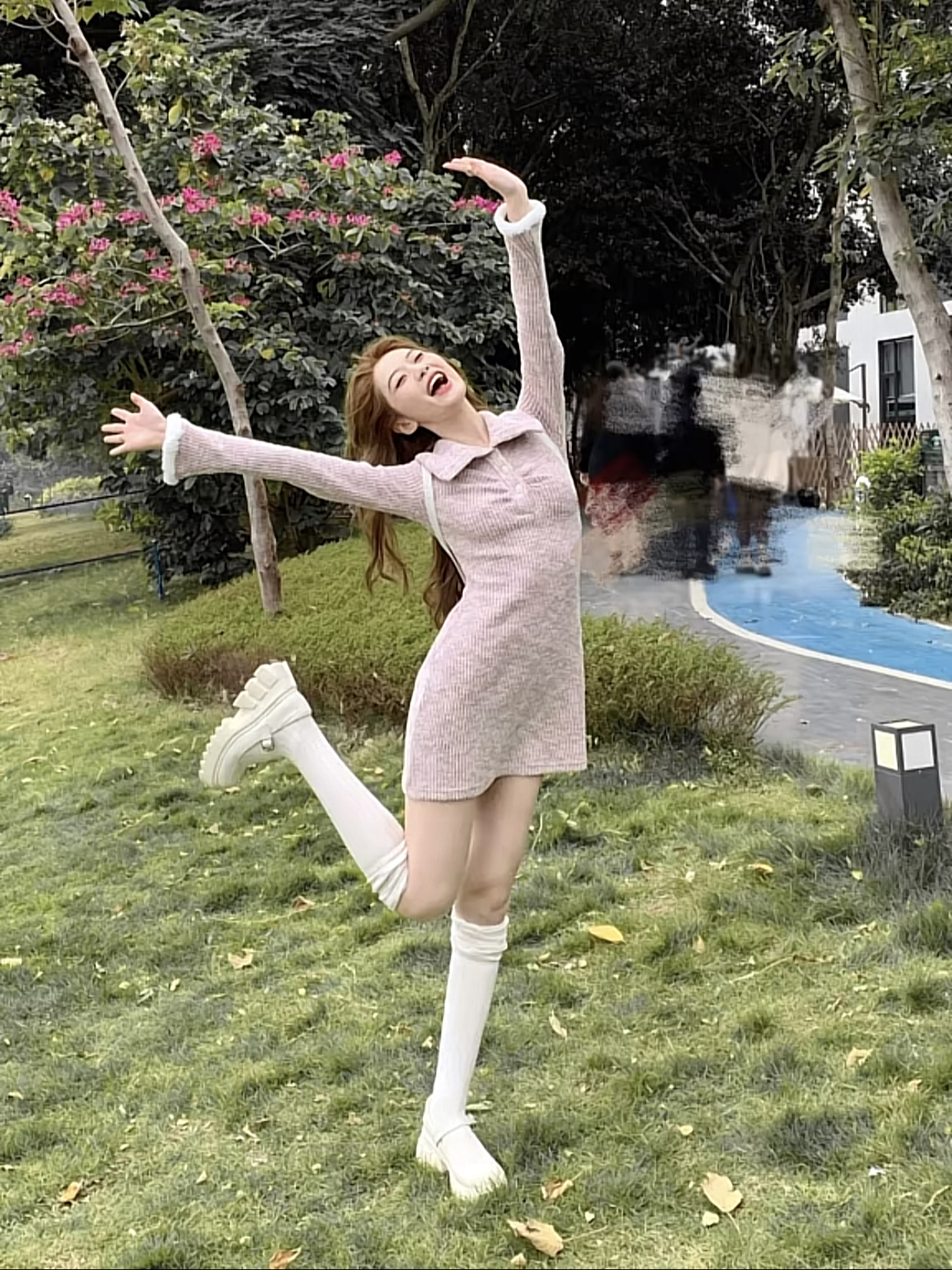 毛边小众设计感收腰长裙 新款 韩系温柔风polo领修身 连衣裙2025秋季