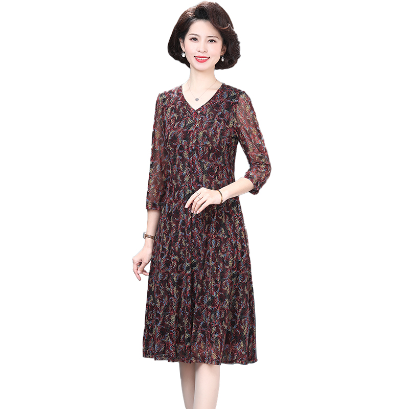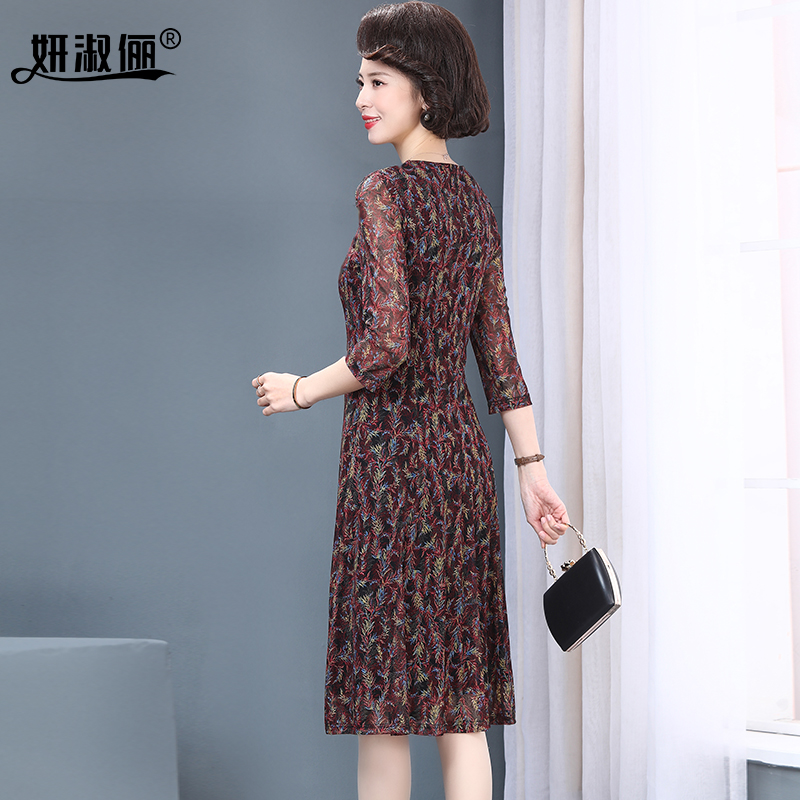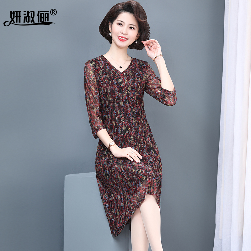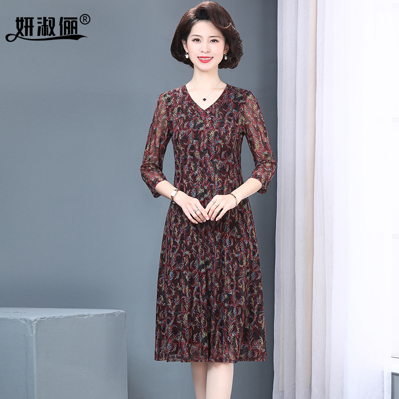 中年妈妈连衣裙时尚 台湾纱高贵夫人洋气质感遮肚裙子 2025春夏新款