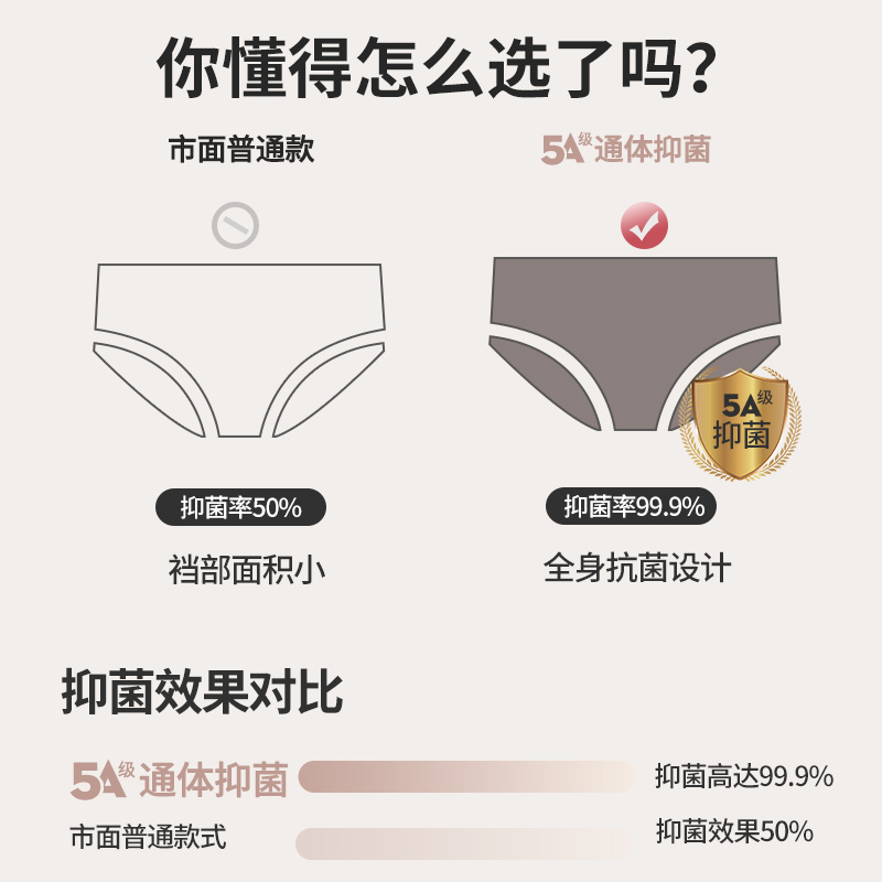 三角裤 高档女式 女纯棉100%全棉档无痕抗菌大码 CarreKenbt高腰内裤