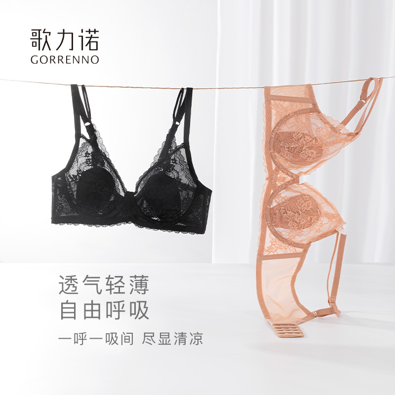 大胸显小内衣女超薄款 蕾丝有钢圈黑色性感防下垂全罩杯文胸罩聚拢