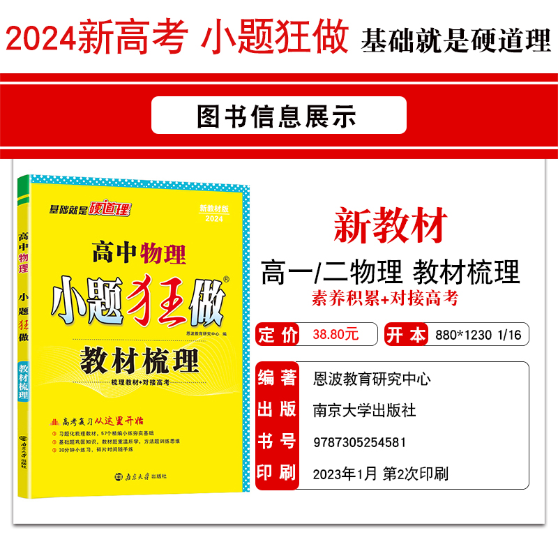 高一高二复习基础题资料书江苏小题狂练习题对接高考资料 教材梳理 附赠答案解析 恩波教育小题狂做高中物理 2024教材新高考