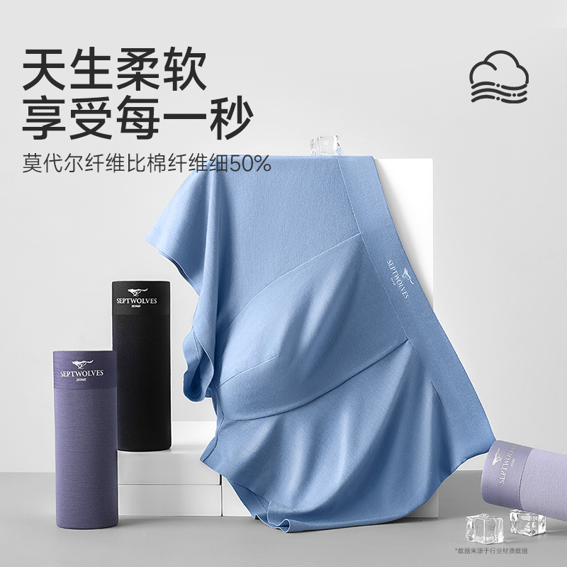 内裤 平角裤 80支莫代尔男生四角裤 冰丝无痕透气男款 夏季 七匹狼男士