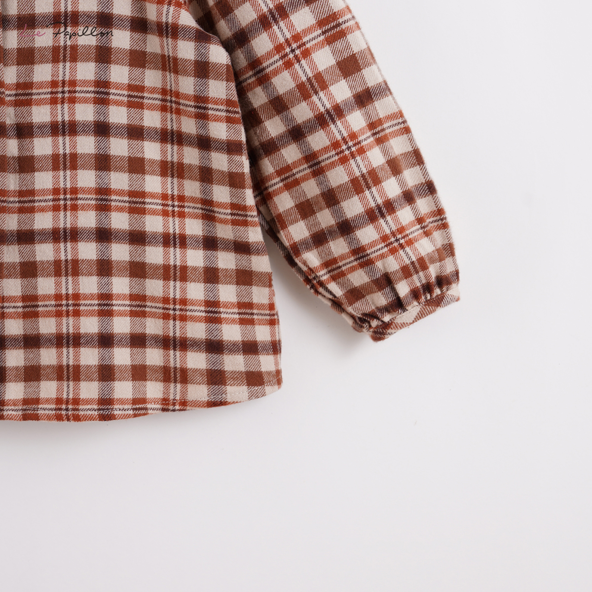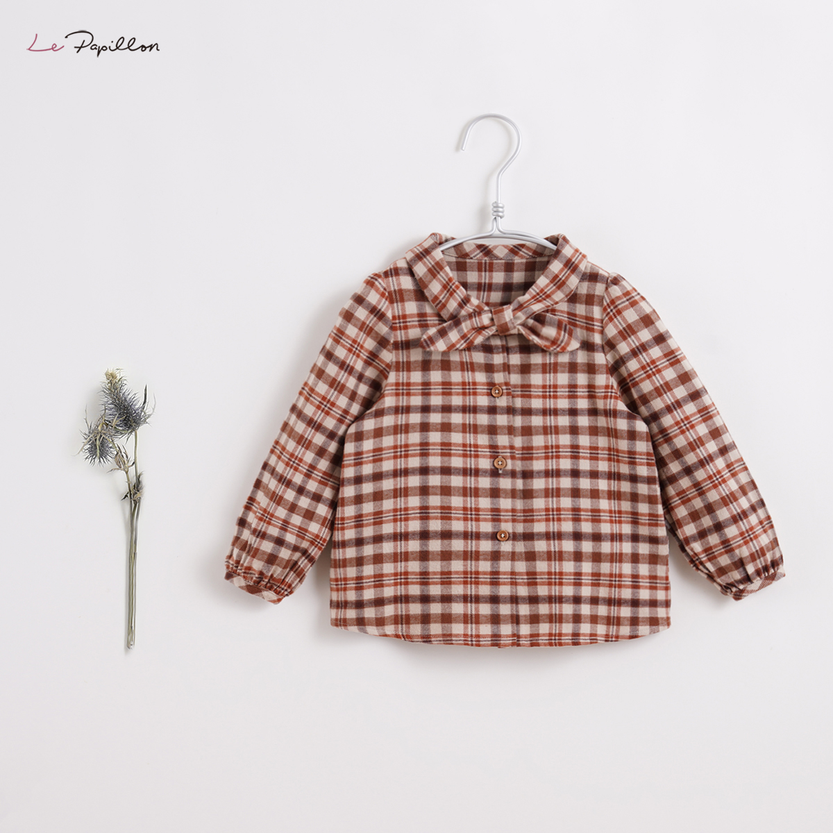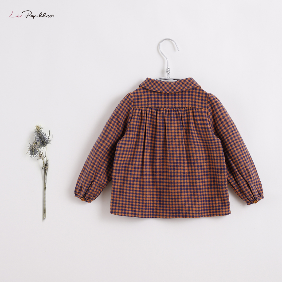 网纱中长款 预售蓝色减龄海军领格子长袖 新款 女2025年秋季 上衣 衬衫
