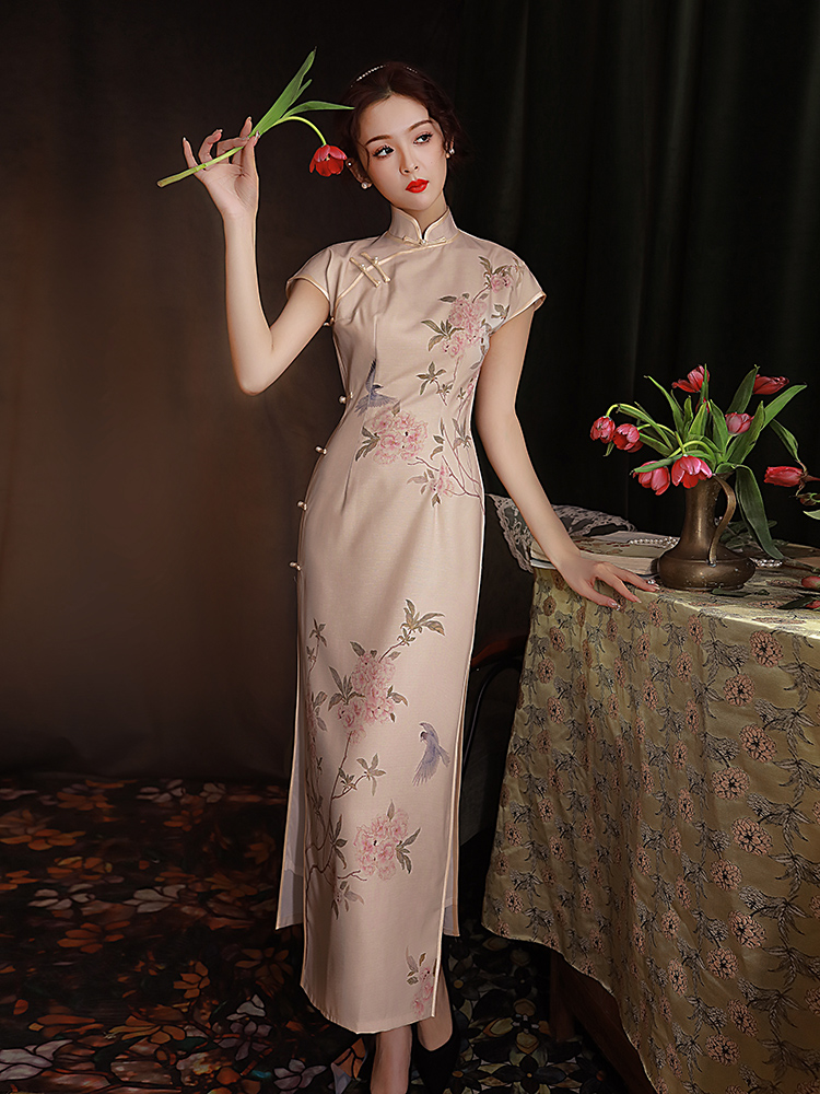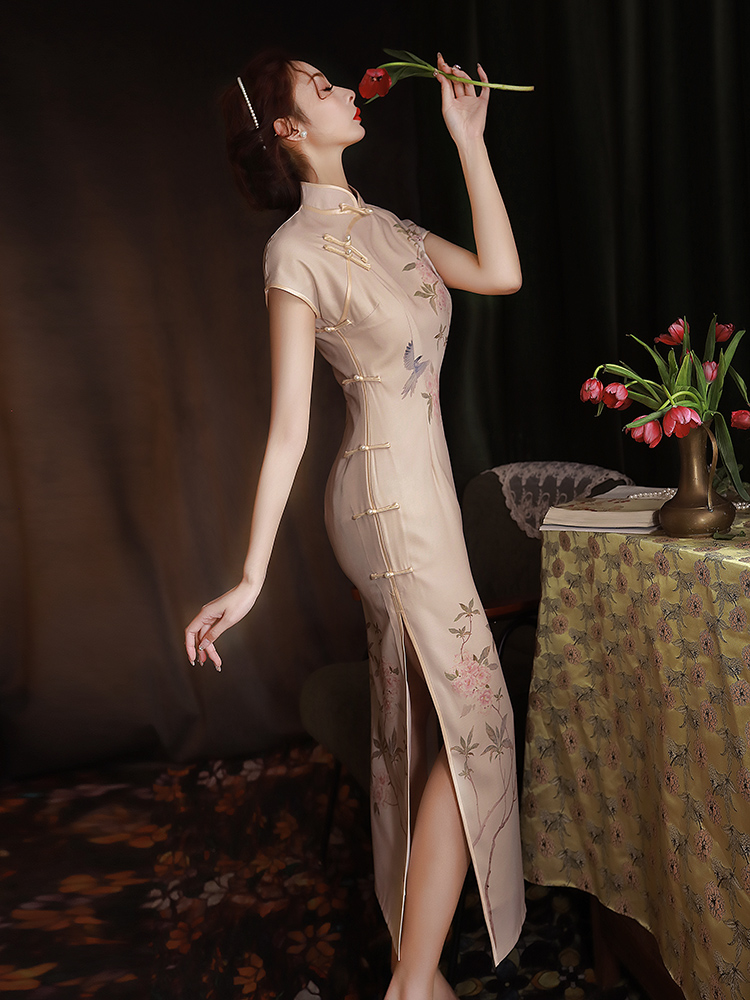 高开叉 连衣裙短袖 旗袍2023年新款 改良复古中国风优雅气质日常长款
