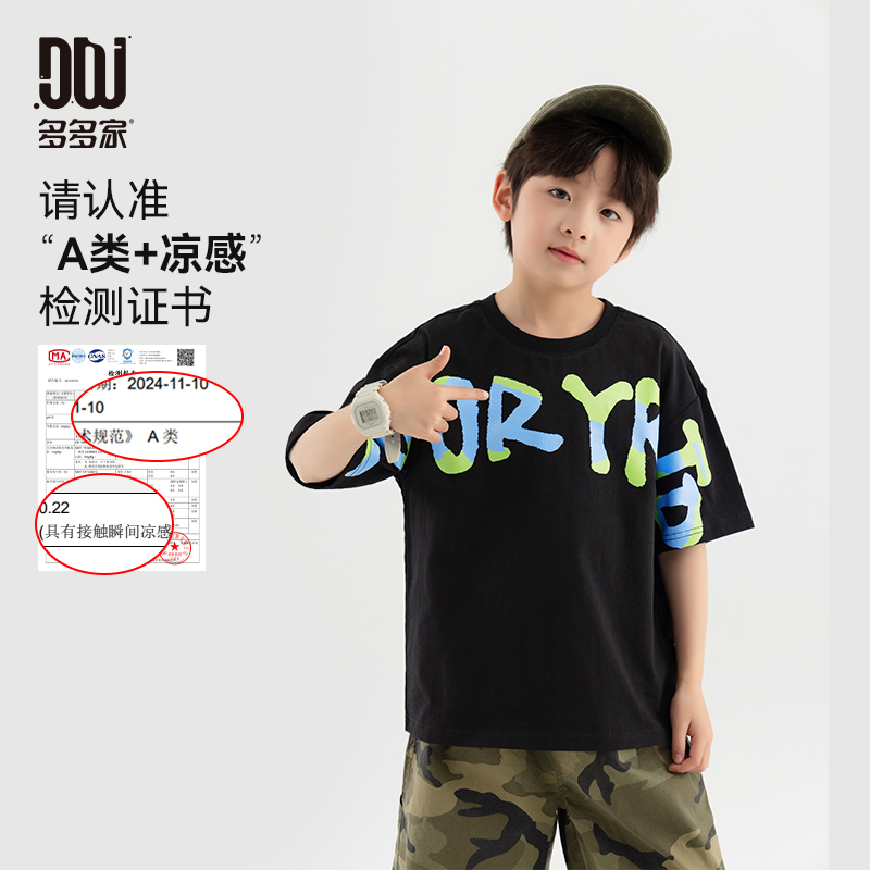 儿童中大童纯棉半袖 新款 印花上衣 凉感2025夏款 多多家男童T恤短袖