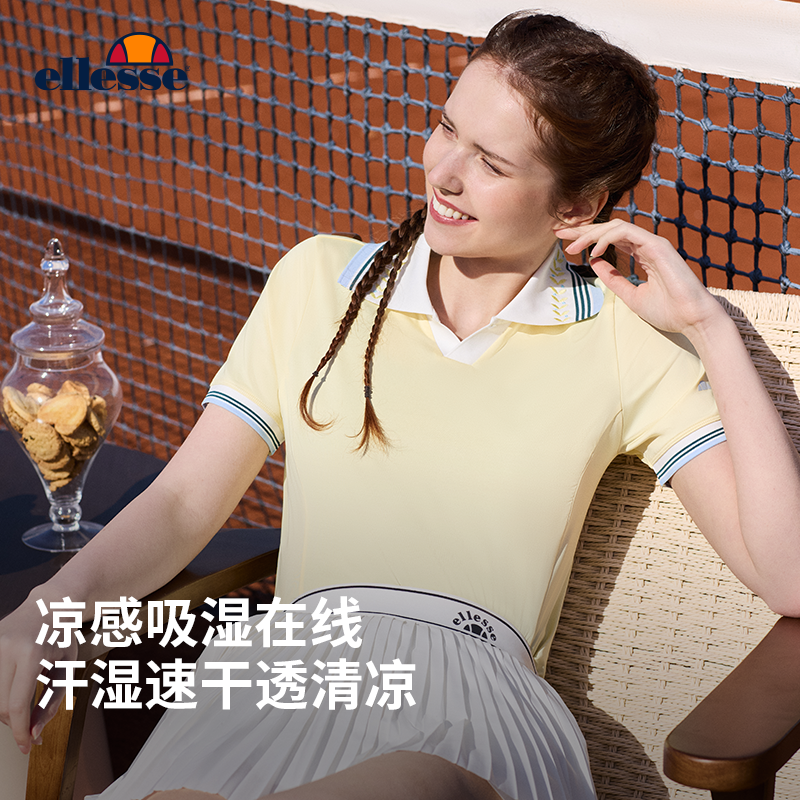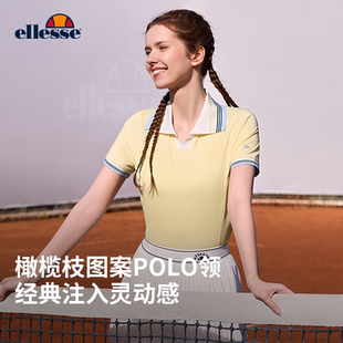 ellesse小贝壳网球运动秋吸湿速干撞色POLO领短袖 T恤上衣内搭女