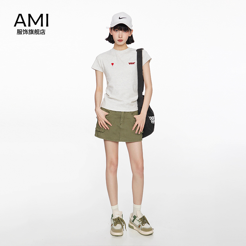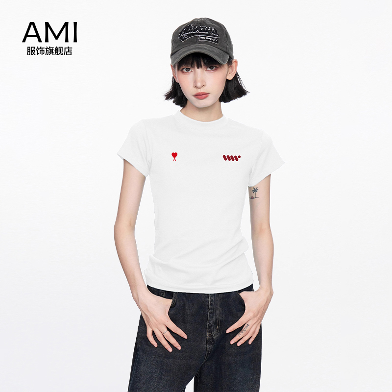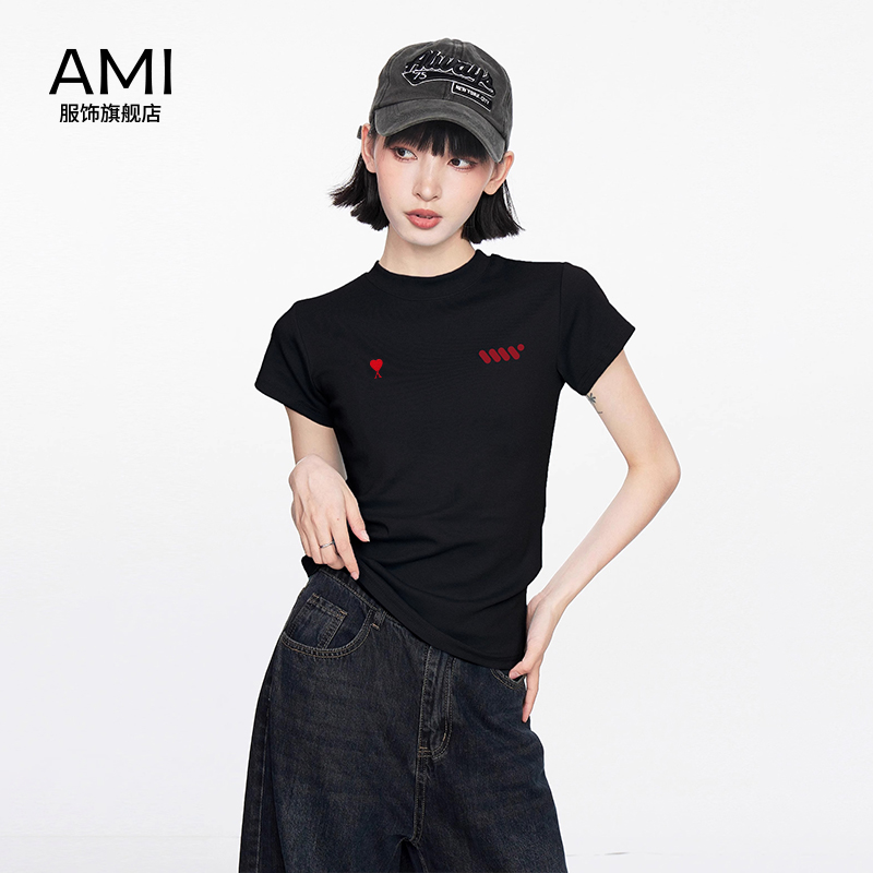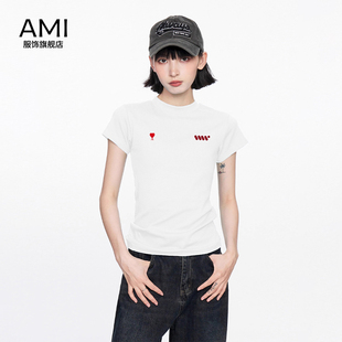 紧身显瘦体恤短款 AMI灰色正肩修身 新款 女生t恤女2025夏季 上衣 短袖