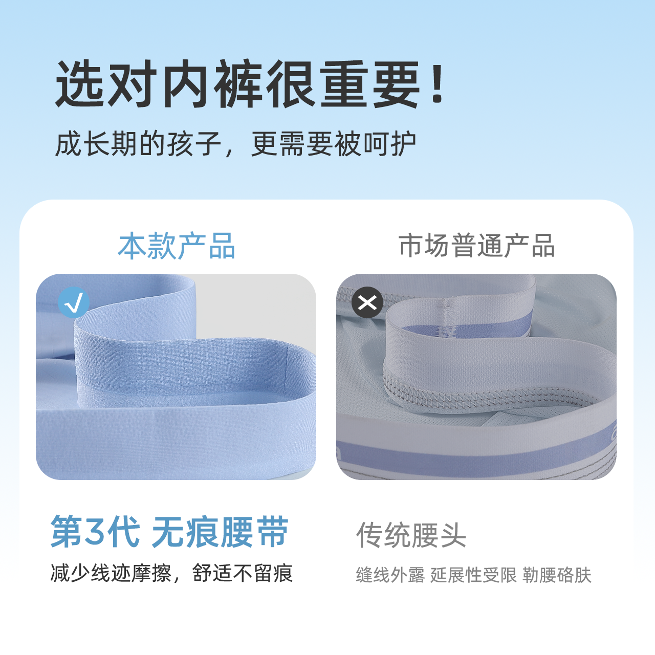 新款 3件 纯棉透气裆青少年四角短裤 平角内裤 男生 蕉内银皮311S男士