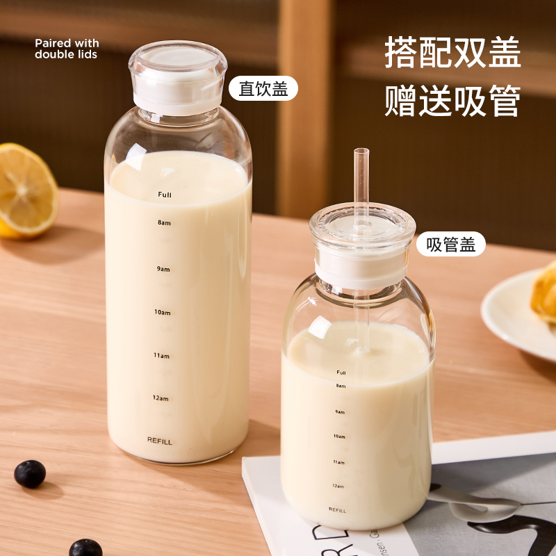 玻璃刻度牛奶杯家用耐高温带盖水杯可微波学生咖啡豆浆杯早餐杯子