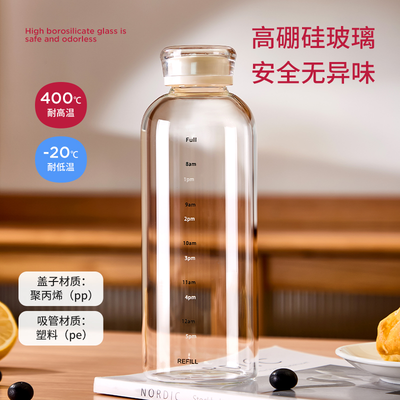 富光玻璃杯水杯女生高颜值高硼硅咖啡杯早餐杯刻度暖手杯随手杯子