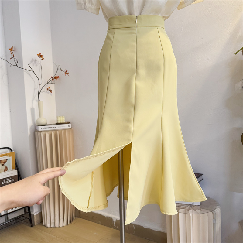黄色鱼尾裙女2025春夏中长款 半身裙高腰a字包臀显瘦气质开叉裙子