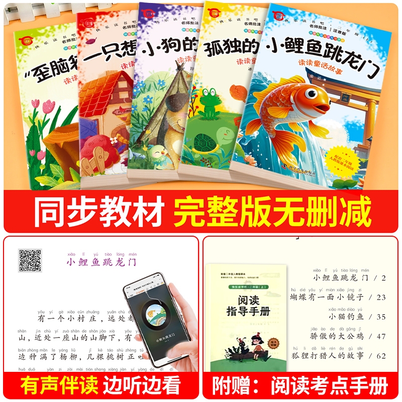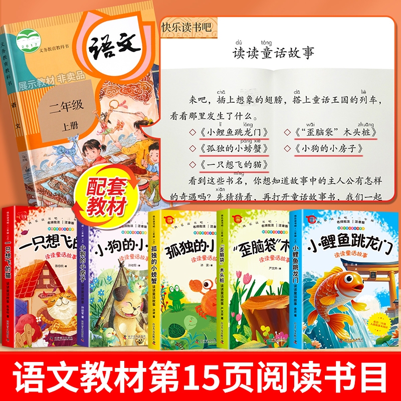 小鲤鱼跳龙门二年级上册必读正版 猫小狗小房子歪脑袋快乐读书吧二上阅读书籍读读童话故事5册木头书目民间同步 课外书一只想飞
