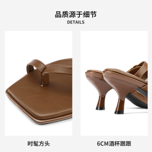 女鞋 外穿拖鞋 2025夏季 气质方头后空时装 职场凉拖 凉鞋 奥康