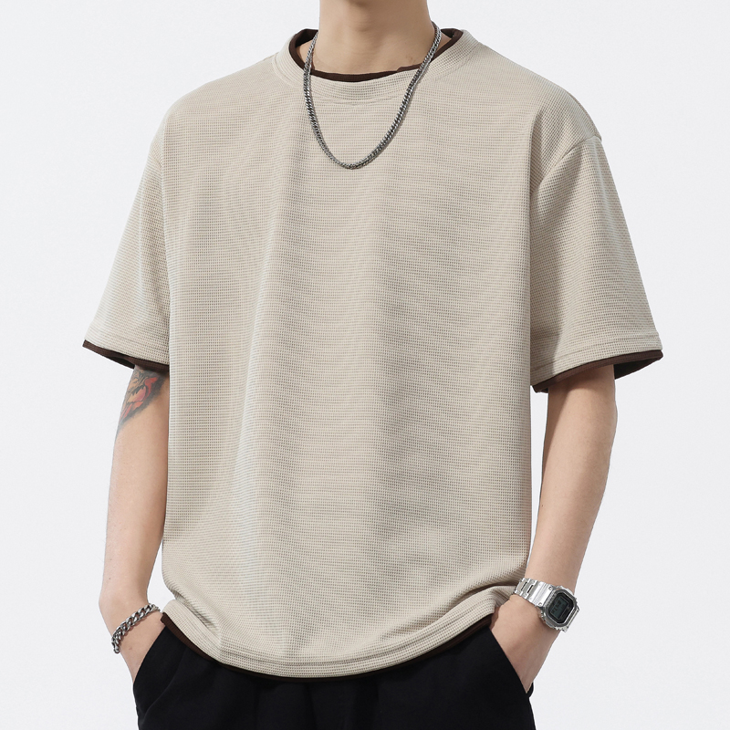 2025新款 罗蒙美式 夏季 男士 潮牌休闲宽松T恤上衣男 重磅华夫格短袖