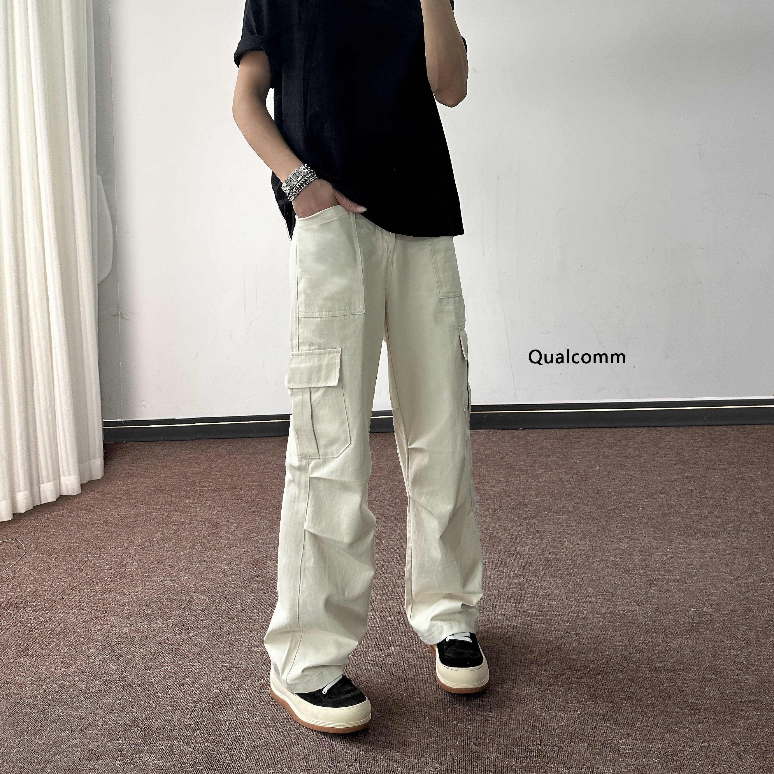 2025秋季 新款 运动拖地裤 垂感显瘦休闲裤 弯口袋糯米阔腿裤
