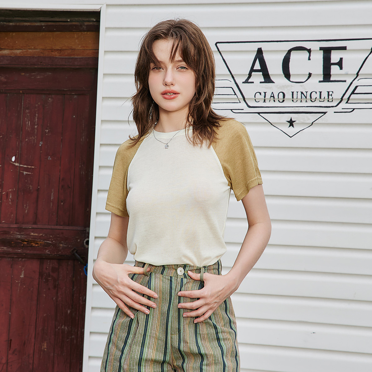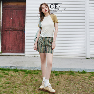 T恤 休闲百搭圆领插肩女式 a02撞色拼接面料舒适透气短袖 夏季