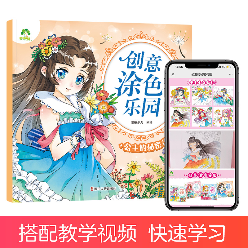 创意涂色乐园 爱德少儿 公主 秘密花园 涂色女孩儿童趣味卡通涂色画 涂色画本绘画册画画本公主换装 墨点