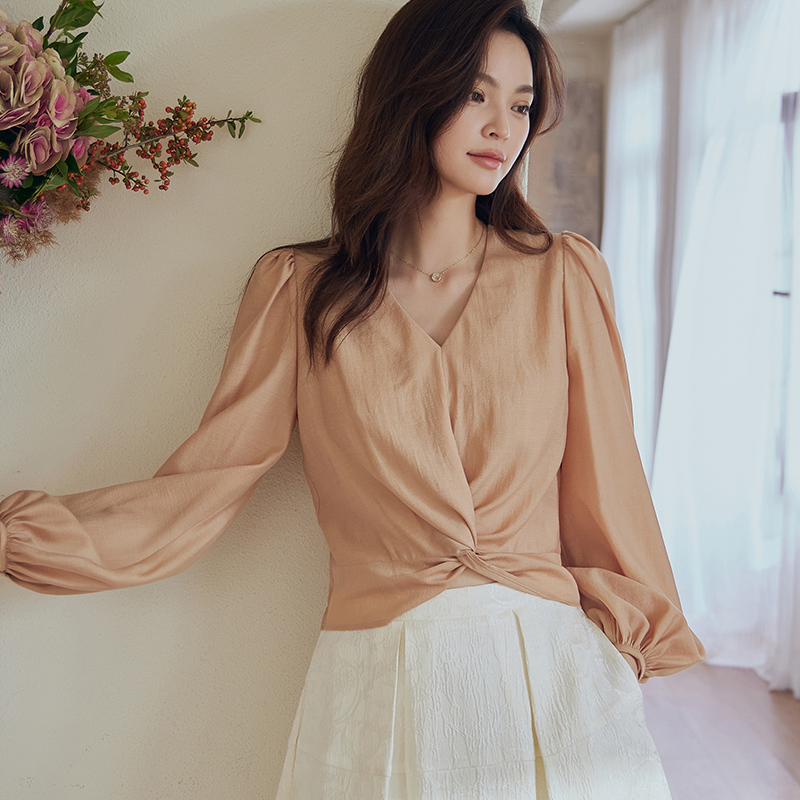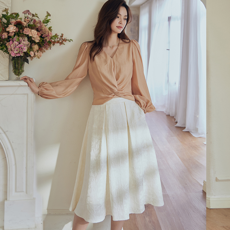 V领衬衫 新款 褶皱半身裙两件套12219 2025夏季 罗衣优雅纯色通勤套装