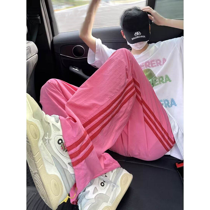 休闲显瘦卫裤 白灰色运动裤 高腰直筒宽松阔腿美式 春秋季 女2025新款