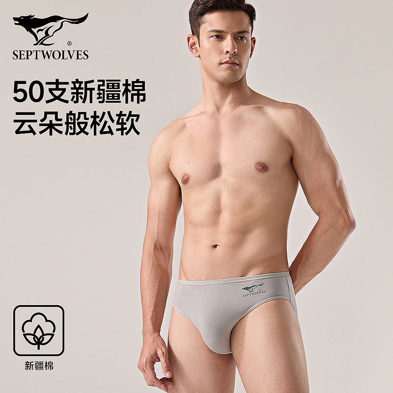 肥佬短裤 七匹狼男士 衩加大码 纯棉抗菌透气中老年爸爸底裤 三角短裤