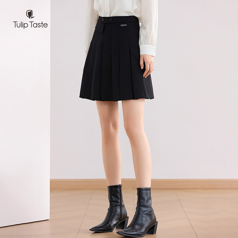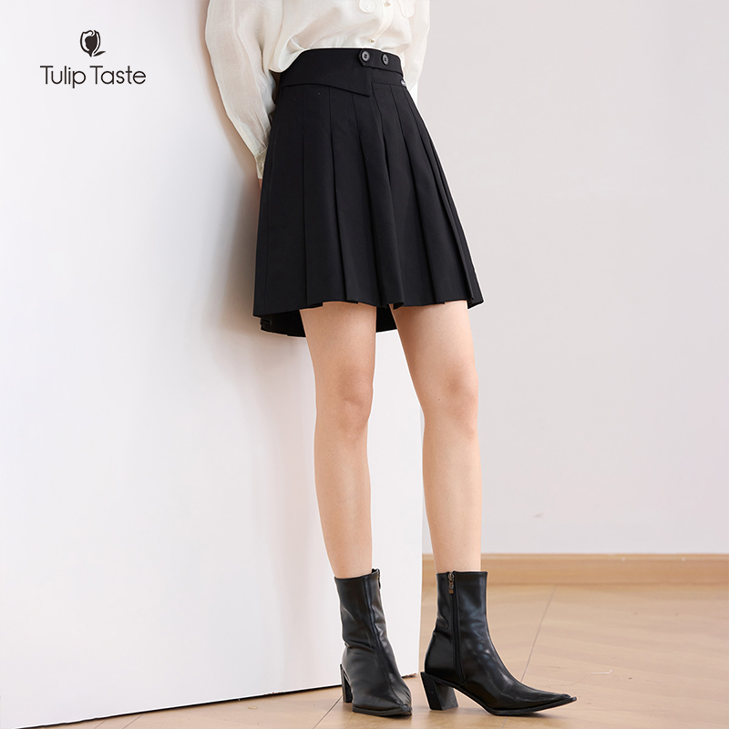 郁香菲百褶半身裙女优雅通勤秋季 高腰短裙显瘦百搭垂感A字裙 时尚