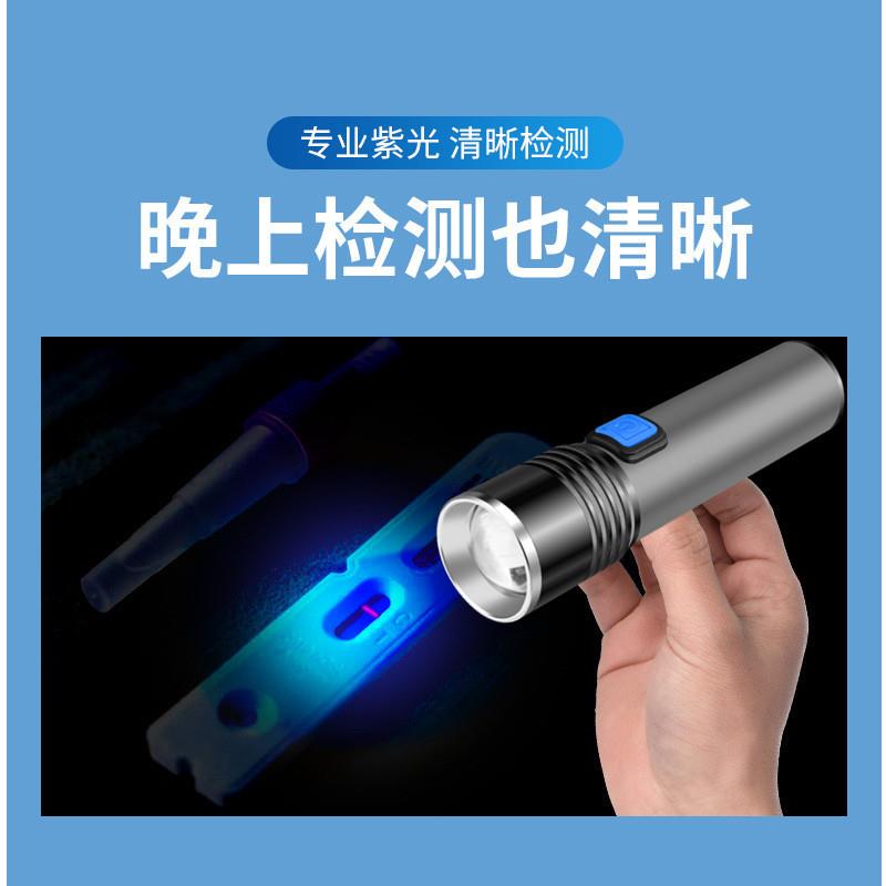 紫光充电变焦nm紫光伍德氏猫藓荧光剂检测nm紫外线手电筒
