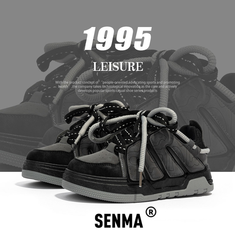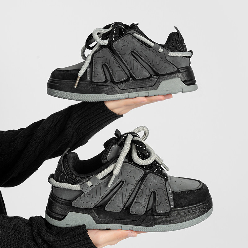 运动休闲情侣鞋 森马板鞋 黑色厚底男鞋 2025新款 女设计感小众面包鞋