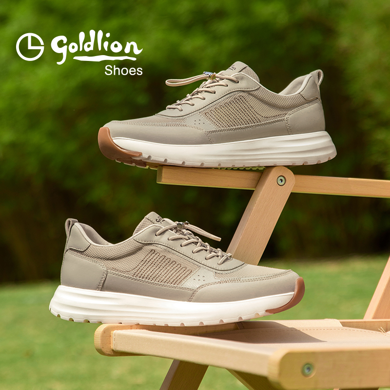 轻便回弹缓震免系休闲运动鞋 新款 2025夏季 Goldlion网面透气男鞋